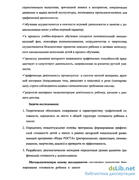 Отсюда проблема исследования: какова структура графической готовности ребенка к школе и каковы основные психолого-педагогические условия, эффективные методы и приемы ее формирования?