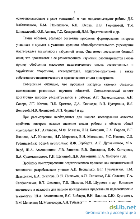 Важность и актуальность рассматриваемой проблемы, ее недостаточная теоретическая разработанность, общепедагогическая и несомненная практическая значимость, обусловили выбор темы диссертационного исследования «Формирование интереса к музыке у учащихся 1-8 классов».
