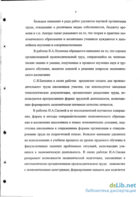 О том, что научная организация труда является важной составляющей экономической подготовки учащихся, влияющая на формирования таких качеств, как дисциплинированность деловитость, хозяйственность и т.п. пишут в своих работах С.Я.Батышев, Е.В.Огород-ников, К.Н.Катханов и другие авторы. Они утверждают, что научная организация труда формирует у учащихся культуру труда, рациональную организацию рабочего места и в итоге влияет на формирование экономической культуры.