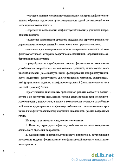 Логика выявления указанных особенностей требует от диссертанта ответа на следующие вопросы: как происходит конфликт в подростковой среде? каковы структурная и динамическая модель конфликта в подростковой среде?