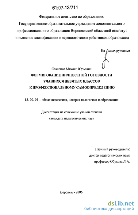 с разрешением противоречия между потребностями общества и персональными возможностями человека (Э. Берн, С. Берне, Л.И. Божович, Б.С. Братусь, М.Вебер, И.А. Винтин, М.Р. Гинзбург, И.С. Кон, СП. Крягжде, Г. Маркузе, В.А. Матусевич, Г.П. Ников, А.В. Петровский, В.Ф. Сафин, Д.Н. Узнадзе, Б.Шеффер, Б. Шледер, И.Ю. Шустова, Д.Б. Эльконин, Э. Эриксон); подходы к решению проблемы подготовки школьников к профессиональному самоопределению (СМ. Годник, Л.М. Йовайша, Е.А.Климов, Н.Н. Захаров, В.Д.Симоненко, Я.Л. Коломинский, К.К. Платонов, СН. Чистякова, А.К.Осницкий, Н.С Пряжников, А.Е. Голошток); теоретические положения личностно ориентированной педагогики, связанные с тем, что развитие личности ученика происходит не только за счет приобретения знаний, умений, навыков, но и преобразования субъектного опыта, выступающего источником самодетерминации, саморазвития (К.А. Альбуханова-Славская, М.Н. Берулава, В.И. Лещинский, В.Г. Маралов, Л.А. Обухова, В.А. Ситаров, И.С. Якиманская).