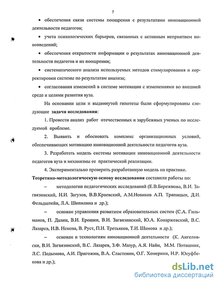 Предмет исследования - теоретические основания и структура задач, решаемых руководителем при формировании мотивационнои среды инновационной деятельности педагогических кадров вуза, а также формы, методы и средства их решения, побуждающие педагогов к активной деятельности в интересах развития вуза.