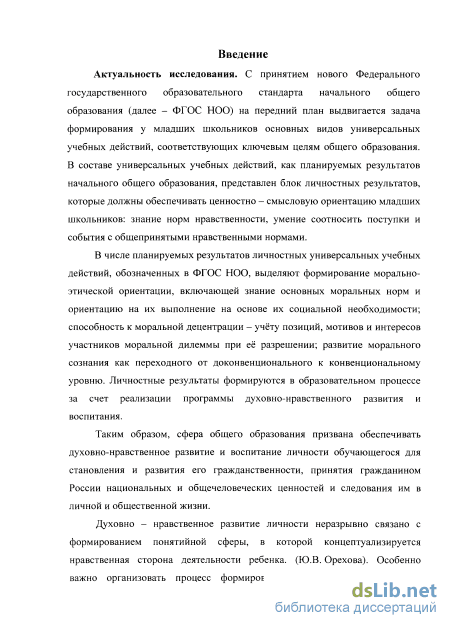 Актуальность исследования. С принятием нового Федерального государственного образовательного стандарта начального общего образования (далее – ФГОС НОО) на передний план выдвигается задача формирования у младших школьников основных видов универсальных учебных действий, соответствующих ключевым целям общего образования. В составе универсальных учебных действий, как планируемых результатов начального общего образования, представлен блок личностных результатов, которые должны обеспечивать ценностно-смысловую ориентацию младших школьников: знание норм нравственности, умение соотносить поступки и события с общепринятыми нравственными нормами.