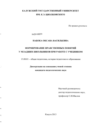 - имеющимся педагогическим потенциалом учебника для формирования нравственных понятий младшего школьника и отсутствием теоретической разработанности педагогических условий реализации данного потенциала в педагогической теории.