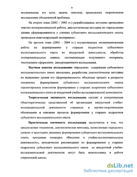 ной учебно-исследовательской деятельности учащихся; в научно-теоретическом обосновании и описании процесса формирования у старших подростков субъектного исследовательского опыта.