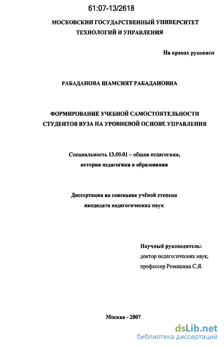 Наблюдение за самостоятельной работой студентов разных ступеней обучения, трёхлетний опыт работы со студентами МГУТУ (полный и сокращенный сроки обучения по специальности Педагогика), а также результаты констатирующего эксперимента позволяют судить о недостаточном уровне владения студентами младших курсов умениями и навыками самостоятельной работы, их низкой готовности к исследовательской деятельности при переходе на старшую ступень обучения (IV-V курсы). В то же время новый -компетентностный подход к подготовке бакалавров, магистров и специалистов, признанный стратегическим («Реальность XXI века» ИЛ. Зимняя), предъявляет высокие требования к уровню профессионализма, включая и качество аудиторной и внеаудиторной самостоятельной работы студентов в вузе.