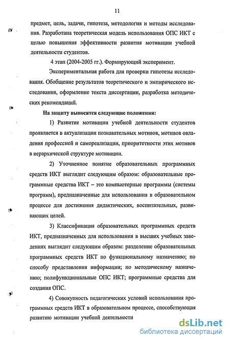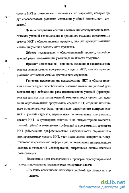 Предмет исследования - принципы создания и педагогические условия использования программных средств ИКТ, способствующие развитию мотивации учебной деятельности студентов.