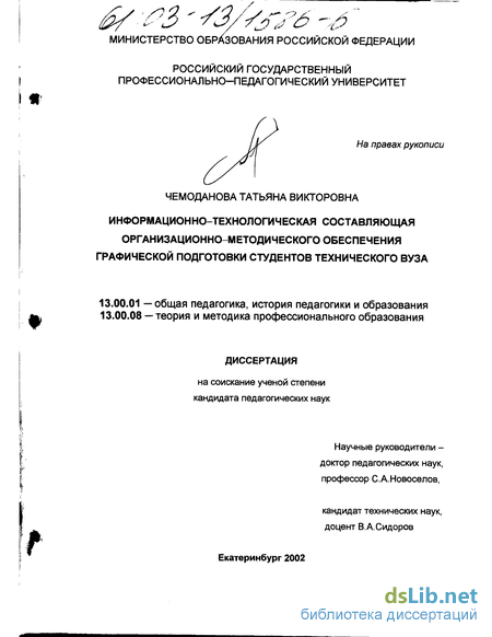 В процессе проведения диссертационного исследования особое внимание было обращено на поиск и изучение работ, связанных с фактической реализацией предписаний государственного образовательного стандарта (ГОС) по обучению будущих специалистов интерактивным системам компьютерной графики. Однако, нами найдены лишь единичные исследования, связанные с обучением студентов работе с графическими НИТ ( В.В.Алейников, Г.В.Виноградова, Г.Ф.Горшков, Е.А.Ерофеева, Г.М.Овчинникова [ 14, 65, 93, 121, 248]). Не удалось выявить научные работы, направленные на совершенствование фундаментальной графической подготовки студен тов технических вузов путем использования 3-мерных САПР в качестве необходимого исходного элемента информационно-технологической составляющей ее организационно-методического обеспечения, что подтверждает актуальность и новизну настоящего исследования.