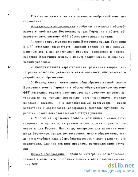 Объект исследования - процесс интеграции общеобразовательной школы пяти Восточных земель в образовательную систему ФРГ,