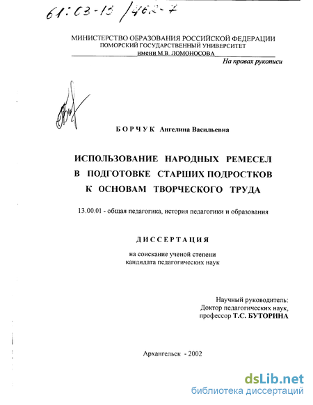 6. Борчук А.В. Народные ремесла Русского Севера как средство