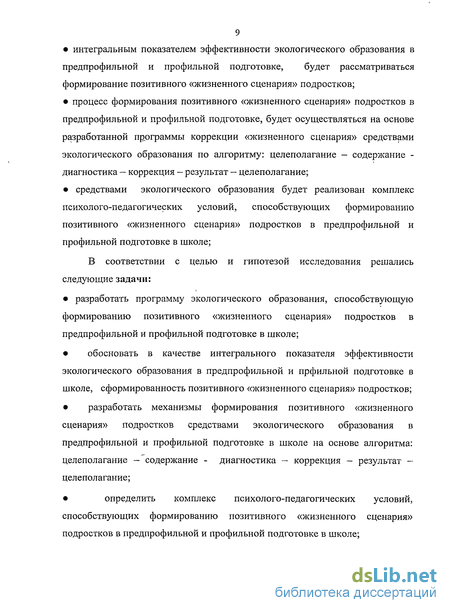 Глава I. Теоретико-методологические основы экологического образования как условие формирования позитивного «жизненного сценария» подростков в предпрофильпой и профильной подготовке в школе .
