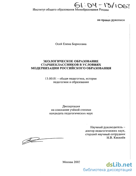 Особый интерес для исследования при этом представляют работы по таким направлениям, как теория, практика и тенденции развития экологического образования, воспитания (И.Д. Зверев, Д.Н. Захлебный, И.Т. Суравегина, Б.Г. Иоган-зен, Н.В. Шкарбан); формирование экологических знаний и организация практической деятельности в рамках учебных предметов (Я.И. Габев, Т.Р. Кучер, Е.Ю, Шапокеня, В.Н. Назаренко, СВ. Алексеев); формирование мотивов бережного отношения к природе (Е.Н. Кудрявцев, Н.А. Рыков); использование природной среды в развитии личности, в её нравственном, эстетическом и трудовом воспитании (А.Н. Алексеев, А.П. Сидельковский, Г.А. Дружинина, Б.Т. Лихачёв, А.П. Печко, Л.А. Родоба, Т.В. Денисова); подготовка учителей в области экологического образования (А.В. Афонин, В.М. Сенкевич, С.Н. Глазачёв, А.В. Миронов, Е.С. Сластёнина).