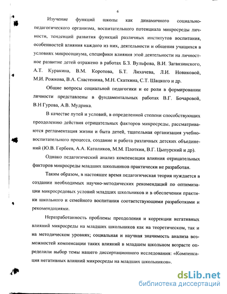 Однако педагогический анализ компенсации влияния отрицательных факторов микросреды младших школьников практически не разработан.
