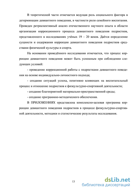 - раскрыты принципы коррекции девиантного поведения подростков в процессе физкультурно-спортивной деятельности (учёт индивидуальных особенностей подростков, объективность, динамичность, диалектичность, лич-ностно-ориентированный подход, профессионализм изучения);