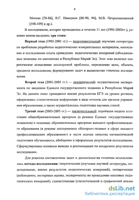 - Апробация методов оценки качества математической подготовки выпускников общеобразовательных учреждений на основе результатов Единых государственных экзаменов по математике