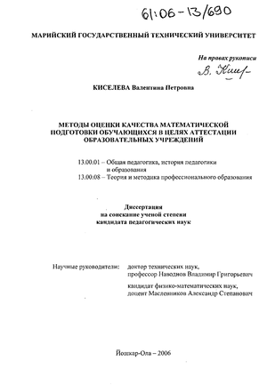 Целью исследования является разработка методов оценки качества математической подготовки обучающихся в целях аттестации образовательных учреждений.