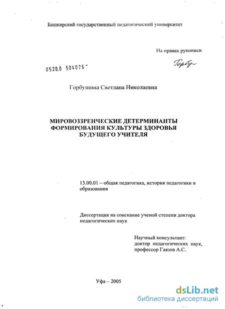 1) выявить сущность содержания понятия «мировоззренческий детерминант», установить и аргументировать его значение при формировании культуры здоровья будущего учителя, обосновать процесс становления культуры здоровья студента в логике системного подхода;