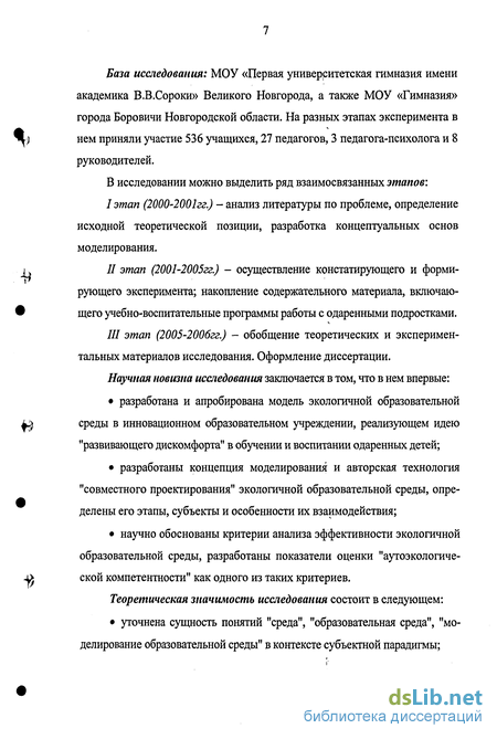 Вопросы конструирования образовательных сред рассмотрены в исследованиях Г.Ю.Беляева, О.С.Газмана, В.Н.Дружинина, И.В.Дубровиной, М.В.Кларина, Н.С.Лейтеса, ИЛ.Лернера, В.И.Панова, В.В.Рубцова, И.Д.Фрумина, М.А.Холодной, Б.Д.Эльконина, И.СЯкиманской, В.А.Ясвина и др. Анализ этих исследований показал, что, несмотря на разработанность общей проблематики их формирования, вопросы, связанные с построением образовательной среды инновационного учебного'заведения, работающего с одаренными детьми, остаются перспективной областью изучения.