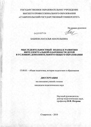 – обоснован выбор мыследеятельностного подхода к развитию интеллектуальной одаренности детей в условиях дополнительного общего образования и дана его развернутая характеристика;