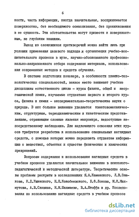 Вопросам содержания и использования наглядных средств в учебном процессе уделяется значительное внимание в психолого-педагогической и методической литературе. Теоретические основы проблемы раскрыты в исследованиях Я.А.Каменского, Л.В.Зан-кова, К.Д.Ушинского, Н.ГЦКонобеевского, Б.Ф.Ломова, М.И.Мах-мутова, А.В.Славина, Н.М.Шахмаева, В.А.Штоффа и др. Исследования по использованию наглядных средств в учебном процессе
