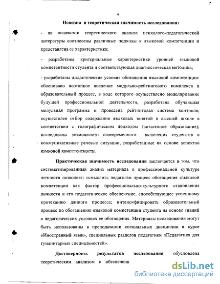 Указанные научные исследования позволили выявить теоретические предпосылки, раскрывающие профессионально-культурнее становление личности студента в социокультурном пространстве высшей школы, а также наметить пути и условия повышения эффективности процесса обогащения языковой компетенции студентов.