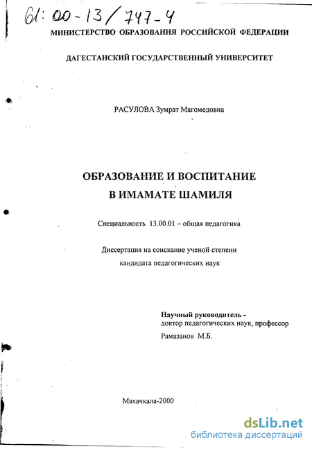 ГЛАВА І. ЭТНОКУЛЬТУРНЫЕ И ПЕДАГОГИЧЕСКИЕ ИСТОКИ СОЗДАНИЯ СИСТЕМЫ ОБРАЗОВАНИЯ И ВОСПИТАНИЯ В ИМАМАТЕ ШАМИЛЯ 13