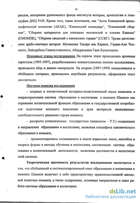 Апробация и внедрение в практику. Полученные результаты обсужда-лись на заседаниях кафедры педагогики Дагестанского государственного университета в 1995-1999 гг., докладывались на различных научно-практических конференциях в Махачкале, Пятигорске. Опубликованные материалы используются кафедрами педагогики Дагестанского института повышения квалификации педагогических кадров, Дагестанского государственного педагогического университета, в педагогических колледжах и школах Дагестана, в лекциях и на семинарских занятиях по истории педагогики, при выполнении студентами курсовых и дипломных работ по педагогике.