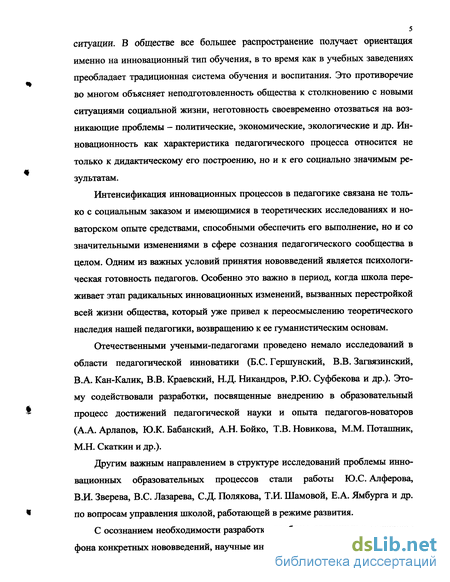 Другим важным направлением в структуре исследований проблемы инновационных образовательных процессов стали работы Ю.С. Алферова, В.И. Зверева, B.C. Лазарева, С.Д. Полякова, Т.Н. Шамовой, Е.А. Ямбурга и др. по вопросам управления школой, работающей в режиме развития.