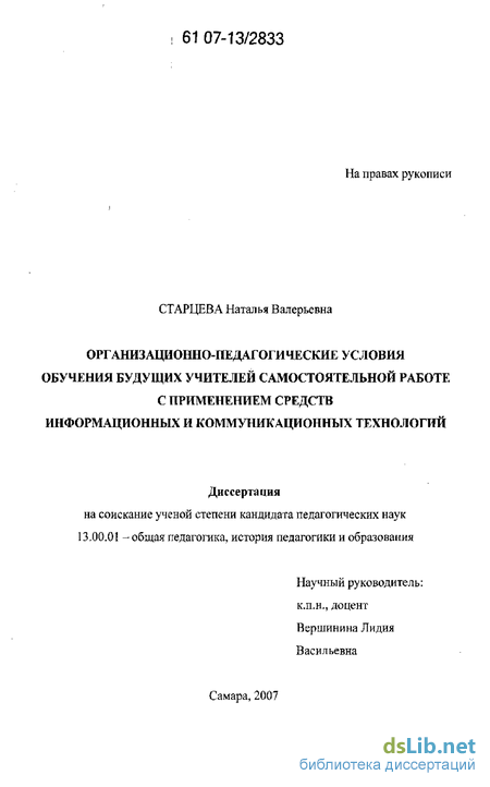 Глава 1 Теория и практика обучения будущих учителей самостоятельной работе в условиях информатизации образовании
