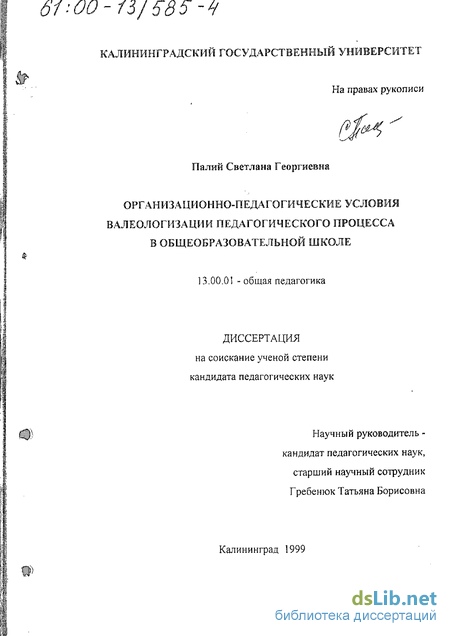 В этом суть решаемой автором данного исследования проблемы: каковы организационно-педагогические условия валеологизации педагогического процесса общеобразовательной школы?