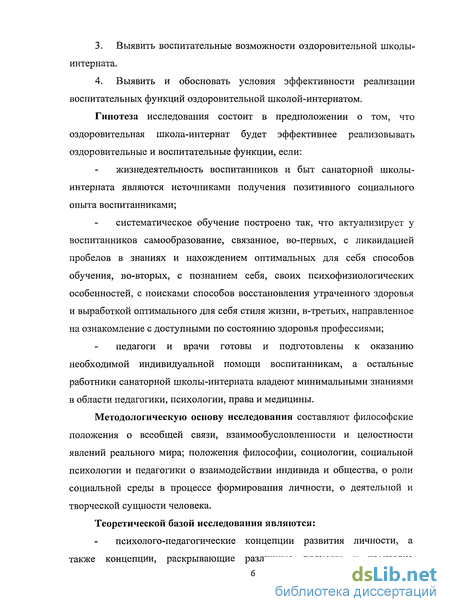 Гипотеза исследования состоит в предположении о том, что оздоровительная школа-интернат будет эффективнее реализовывать оздоровительные и воспитательные функции, если: