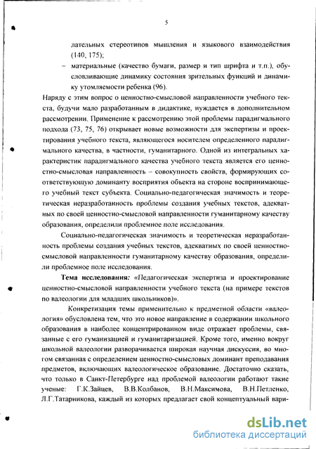 Тема исследования: «Педагогическая экспертиза и проектирование ценностно-смысловой направленности учебного текста (на примере текстов по валеологии для младших школьников)».