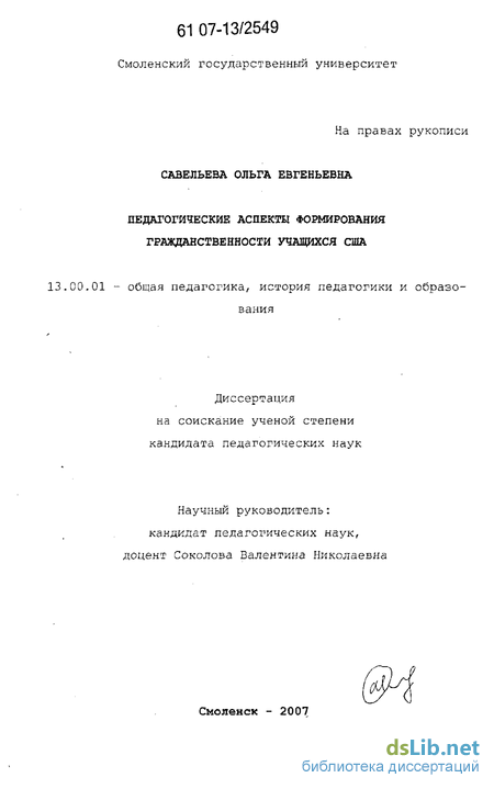 ской педагогики (Л.М. Архангельский, О.С. Галанин, В.И. Кожокарь, Л.В. Кузнецова, Б.Т. Лихачев, Г.Н. Филонов, Л .К. Фомичева, М. П. Чумакова), а наибольший интерес он привлек к себе в настоящее время. Многие современные ученые посвятили свои работы гражданскому воспитанию школьников различных ступеней обучения (О.И. Ковалева, Т.П. Осипова, Н.А. Сиволюбова, Я.В. Соколов, И.В. Харламов, М.А. Шкробова, Н.Ю. Яшина). Исследователи Л.В. Лазарева, Г.Р. Ахметжанова разрабатывали вопрос о готовности и подготовке учителей к осуществлению гражданского воспитания учащихся. Проблемам гражданского воспитания учащийся молодежи, а также гражданского воспитания в вузе посвящены работы А.С. Гаязова, Л.И. Аманбаевой, Н.А. Савотиной.