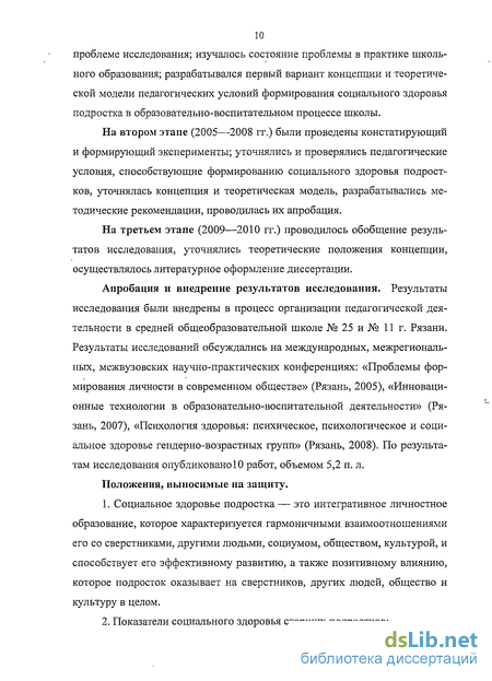 формированию социального здоровья подростков, уточнялась концепция и теоретическая модель, разрабатывались методические рекомендации, проводилась их апробация.