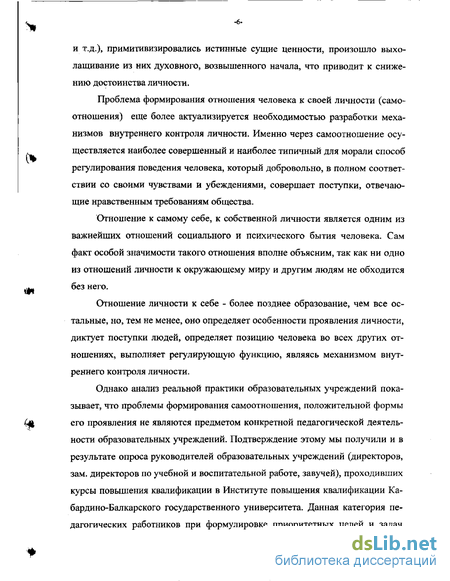 Л.П.Сидельковского, Е.В.Бондаревской, Л.И.Маленковой, Н.Е.Щурковой и других. В них раскрываются отдельные аспекты проблемы, однако, всестороннее исследование проблемы формирования самоотношения личности отсутствует.