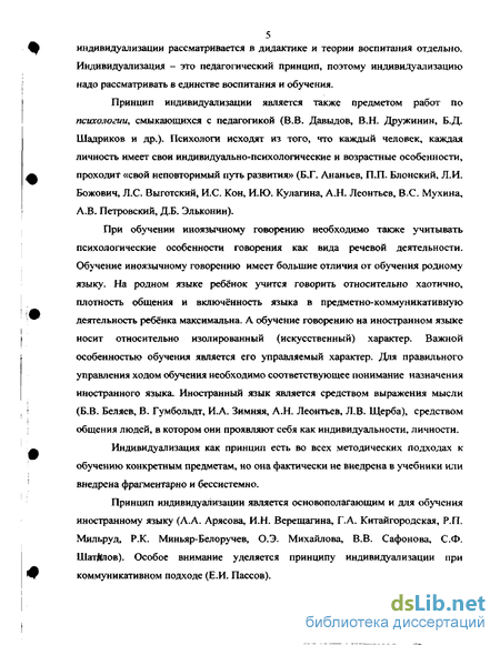 Индивидуализация как общедидактический или методический принцип признается также исследователями, занимающимися методикой обучения иностранным языкам (Н.Д. Гальскова, Н.И. Гез, Г.А. Китайгородская, М.В. Ляховицкий, Р.П. Мильруд, Р.К. Миньяр-Белоручев А.А. Миролюбов, О.Э. Михайлова, Е.И. Пассов, Г.В. Рогова, BJB. Сафонова, Т.Е. Сахарова, С.К. Фоломкина, С.Ф. Шатилов) (48, 84, 102, ПО, 111, 112,113, 131, 153, 155,157, 194).