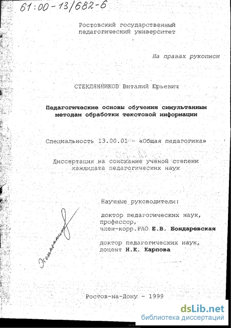 Глава вторая. Педагогические основы обучения учащихся старших классов и студентов высших учебных заведений симультанным методам обработки текстовой информации 77