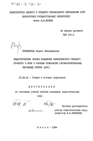 Эффективность выработанных предложений и рекомендаций подтверждена также в ходе экспериментального обучения студентов, проводившегося при участии автора диссертации в течение восьми лет в Белгосуниверситете имени В.И.Ленина на кафедрах электронных математических машин, психологии и химическом факультете.