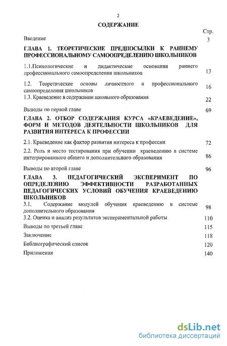 ГЛАВА 2. Отбор содержания курса «краеведение», форм и методов деятельности школьников для развития интереса к профессии