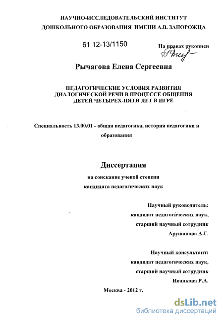 Фундаментальные теоретические исследования диалога (М.М. Бахтин, В.С. Библер; А.А. Леонтьев, Б.Ф. Ломов, Ю.М. Лотман, Ж. Пиаже, Г. Померанц, Е.Ф. Тарасов, Т.Н. Ушакова, А.М. Шахнарович, Н.М. Юрьева, П.Л. Якубинский) инициировали новые подходы к исследованиям диалогической речи детей в методике развития речи (А.Г. Арушанова, О.А. Базикова, И.В. Бондарева, М.В. Ильяшенко и др.). В результате первоначальное представление о том, что диалогическая речь развивается в повседневной жизни и разных видах обучающих бесед, сменилось пониманием того, что преобладающая сфера диалогического общения в дошкольные годы - игра.