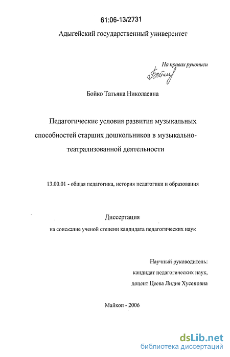 1.3. Особенности развития музыкальных способностей у детей старшего дошкольного возраста в процессе музыкально-театрализованной деятельности 61