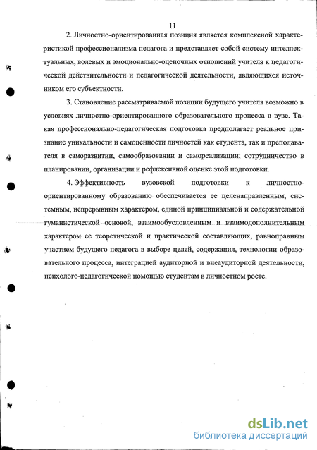 Становление рассматриваемой позиции будущего учителя возможно в условиях личностно-ориентированного образовательного процесса в вузе. Такая профессионально-педагогическая подготовка предполагает реальное признание уникальности и самоценности личностей как студента, так и преподавателя в саморазвитии, самообразовании и самореализации; сотрудничество в планировании, организации и рефлексивной оценке этой подготовки.
