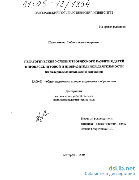 — определена педагогическая сущность, содержание и условия творческого развития детей дошкольного возраста в процессе игровой и изобразительной деятельности;