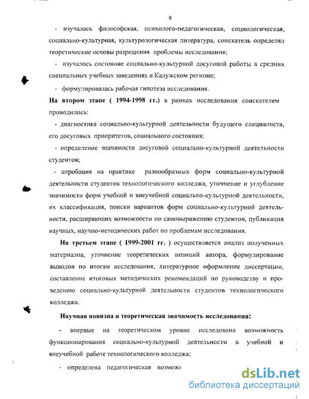изучалась философская, психолого-педагогическая, социологическая, социально-культурная, культурологическая литература, соискатель определял теоретические основы разрешения проблемы исследования;
