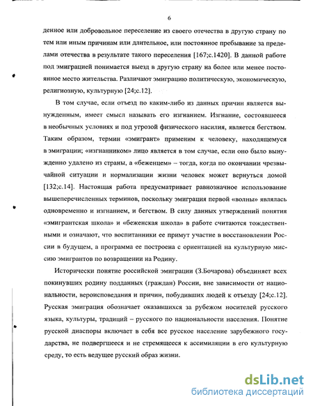 В том случае, если отъезд по каким-либо из данных причин является вынужденным, имеет смысл называть его изгнанием. Изгнание, состоявшееся в необычных условиях и под угрозой физического насилия, является бегством. Таким образом, термин «эмигрант» применим к человеку, находящемуся в эмиграции; «изгнанником» лицо является в том случае, если оно было вынужденно удалено из страны, а «беженцем» - тогда, когда по окончании чрезвычайной ситуации и нормализации жизни человек может вернуться домой [132;с.14]. Настоящая работа предусматривает равнозначное использование вышеперечисленных терминов, поскольку эмиграция первой «волны» являлась одновременно и изгнанием, и бегством. В силу данных утверждений понятия «эмигрантская школа» и «беженская школа» в работе считаются тождественными и означают, что воспитанники ее примут участие в восстановлении России в будущем, а программа ее построена с ориентацией на культурную миссию эмигрантов по возвращении на Родину.