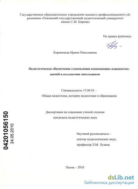 Психолого-педагогическими основаниями явились концепции коллективных взаимоотношений (Е.А. Александрова, И.В. Бабурова, Ы.М. Борытко, В.В. Горшкова, Т.Е. Конникова, Б. Ленский, А.С. Макаренко, Г.С. Маломоркина, Л.И. Новикова, А.В. Петровский, Н.И. Пирогов, Н.Л. Селиванова, В.И. Слобод-чиков, В.А. Сухомлинский, С.Н. Трубецкой, К.Д. Ушинский, СТ. Шацкий, И.Ю. Шустова и др.); положения о сущности и условиях становления понимающих взаимоотношений в различных психолого-педагогических контекстах (Р. Ассаджоли, Е.Г. Белякова, А.А. Бодалев, Е.О. Галицких, И.Д. Демакова, В.В. Знаков, И.А. Колесникова, Н.Б. Крылова, А.Н. Леонтьев, Д.А. Леонтьев, А. Ли-бина, Л.М. Лузина, В.Н. Мясищев, Н.Н. Никитина, С.Л. Рубинштейн, И.А. Со-ловцова и др.).