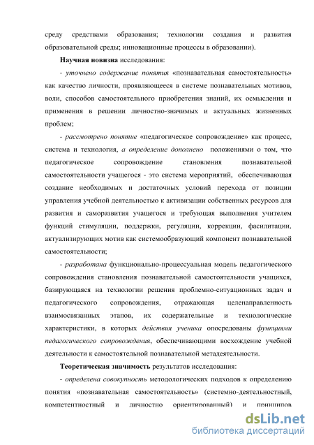 Глава I. Теоретические аспекты педагогического сопровождения становления познавательной самостоятельности учащегося