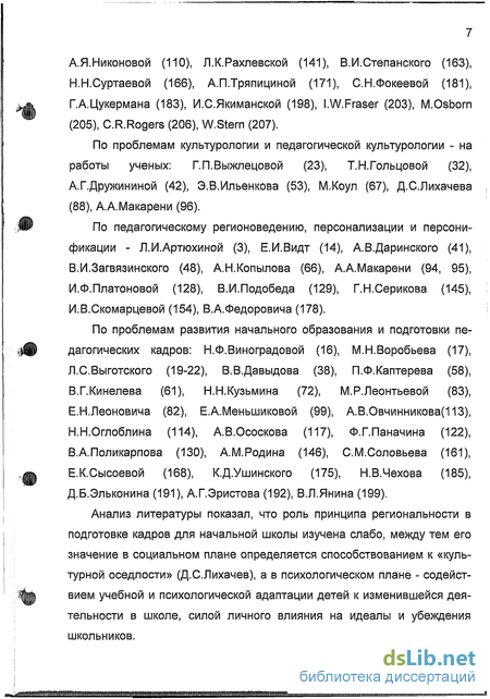 Анализ литературы показал, что роль принципа региональное в подготовке кадров для начальной школы изучена слабо, между тем его значение в социальном плане определяется способствованием к «культурной оседлости» (Д.С.Лихачев), а в психологическом плане - содействием учебной и психологической адаптации детей к изменившейся деятельности в школе, силой личного влияния на идеалы и убеждения школьников.