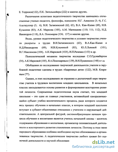 1.2. Сущность и содержание педагогического творчества учителя и его специфические особенности в трудовом воспитании младших школьников 39