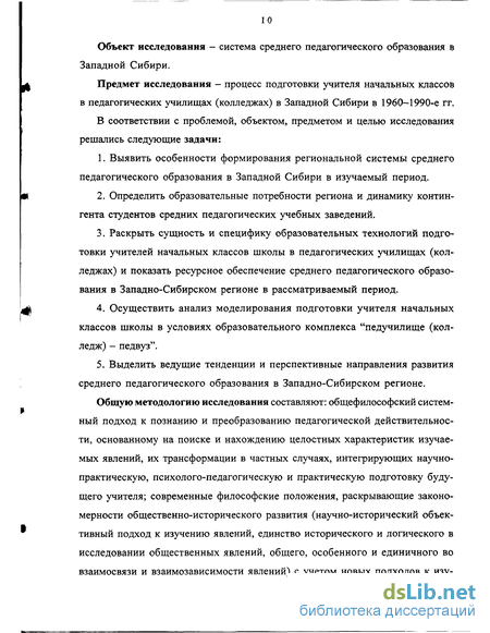 Предмет исследования - процесс подготовки учителя начальных классов в педагогических училищах (колледжах) в Западной Сибири в 1960-1990-е гг.